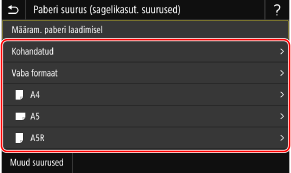 Vajutage [Muud suurused] ja valige paberi formaat kuvatavast loendist.