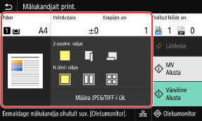 Mustvalgelt printimiseks vajutage [Alusta MV]. Värviliselt printimiseks vajutage [Alusta Värviline].