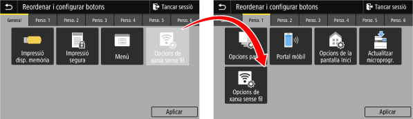 Podeu reordenar els botons de la pantalla [Inici] i moure els botons a altres pestanyes.