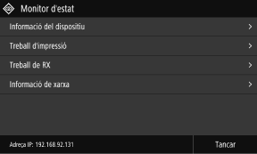 Aquesta pantalla apareix quan premeu [Monitor estat] a la pantalla [Inici] i en altres punts.