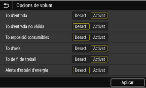 Podeu configurar si l'equip emet sons que us notifiquin les operacions i els estats.
