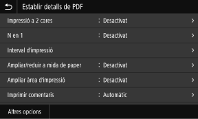 Per mostrar la pantalla, premeu [Establir detalls PDF] a la pantalla de les opcions d'impressió del dispositiu de memòria.