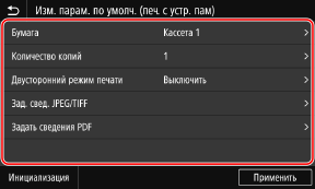 Кроме того, настройки параметров можно сбросить до заданных здесь значений, нажав [Сброс] на экране настройки печати.