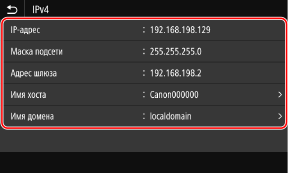 Можно просмотреть настройку IP-адреса, назначенного аппарату, например адрес IPv4 и адрес IPv6.