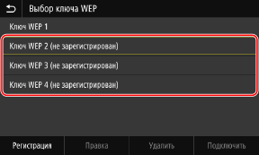 3 | Выберите ключ шифрования, который не зарегистрирован, и нажмите [Регистрация]. ![]() Откроется экран ввода ключа шифрования. |