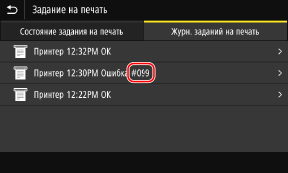 Если невозможно выполнить печать, невозможно получить интернет-факс или произошла другая ошибка, в журнале заданий отображается код ошибки (трехзначный номер, начинающийся с "#").