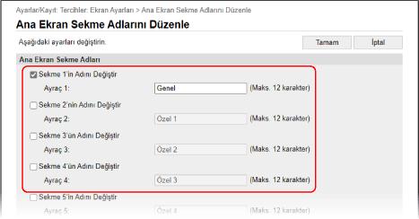 [Ana Ekran Sekme Adlarını Düzenle] ekranı görüntülenir.