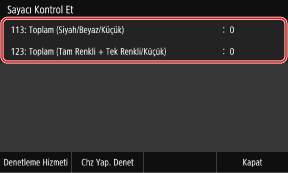 İşletim panelinde, [Ana Ekran] içinde [Sayacı Kontrol Et] öğesine basın.