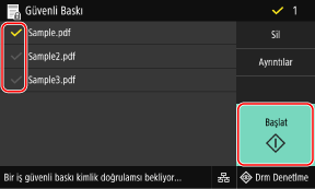 Yazdırılacak güvenli verilerin onay kutusunu işaretleyin ve [Başlat] öğesine basın.