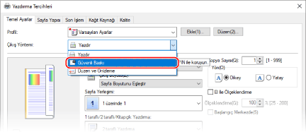 [Çıkış Yöntemi] kısmında [Güvenli Yazdırma] öğesini seçin.