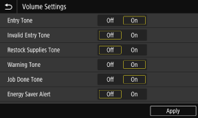 ) בלוח ההפעלה, יוצג מסך ה-[Volume Settings].