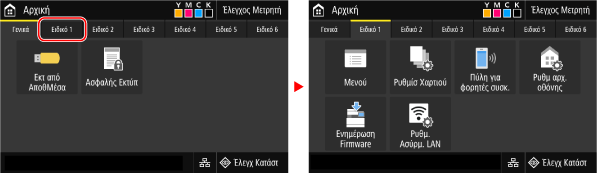 Όταν πατάτε μια καρτέλα, εμφανίζεται η οθόνη της επιλεγμένης καρτέλας.