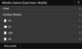 Πατήστε [Άλλα μεγέθη] και επιλέξτε το μέγεθος χαρτιού από την εμφανιζόμενη λίστα.