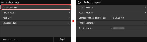 Nadzorna plošča vključuje zaslon na dotik. Za upravljanje se s prstom dotaknite gumbov in elementov, prikazanih na zaslonu.