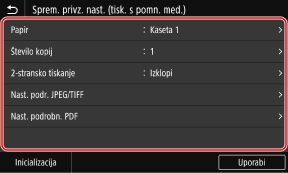 [Spremeni privzete nastavitve (tiskanje s pomnilniškega medija)]