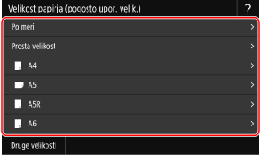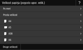 Če si želite ogledati velikosti papirja (kot so ovojnice), ki niso prikazane na zaslonu, se lahko pomaknete po zaslonu.