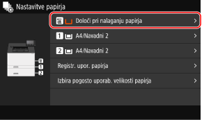 Če v večnamenskem pladnju vedno uporabljate enak papir, lahko registrirate velikost in vrsto papirja. To prepreči prikaz zaslona z nastavitvami papirja, vam pa ni treba konfigurirati nastavitev.