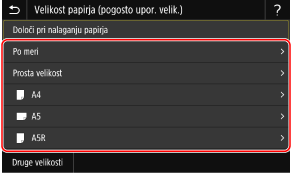 Če si želite ogledati velikosti papirja (kot so ovojnice), ki niso prikazane na zaslonu, se lahko pomaknete po zaslonu.