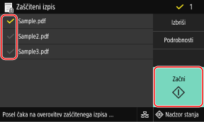 Potrdite polje z zaščitenimi podatki, ki jih želite natisniti, in pritisnite [Začni].