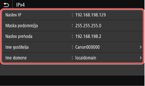 Ogledate si lahko nastavitev naslova IP, nastavljenega za napravo, kot sta naslova IPv4 in IPv6.