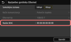 Ogledate si lahko naslov MAC, ki je nastavljen za napravo, ko je ta povezana z žičnim omrežjem LAN.