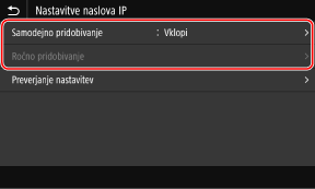 Prikaže se zaslon [Nastavitve naslova IP (Samod. pridob.)].