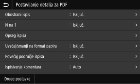 Da bi se zaslon prikazao, pritisnite [Post. detalja za PDF] na zaslonu postavki ispisa s memorijskog medija.