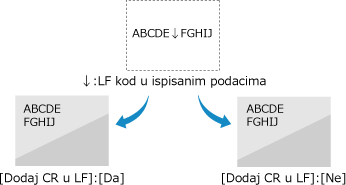 Ako je odabrano [Da], po primitku šifre za prijelaz u sljedeći redak položaj ispisa premješta se na početak sljedećeg retka.