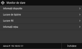 Ecranul este afișat când apăsați pe [Monitor stare] pe ecranul [Pornire] și alte locații.