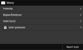 Modificarea afișajului de pe ecranPuteți modifica afișajul de pe panoul de operare, de exemplu prin modificarea limbii de afișare și a unităților, respectiv prin afișarea sau ascunderea mesajelor. [Setări afişaj]