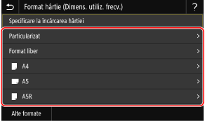 Apăsați pe [Alte formate] și selectați formatul de hârtie de pe lista afișată.