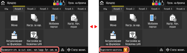 ] на операционния панел. По подразбиране екранът [Начало] се показва след включване на захранването и веднага след затваряне на стартовия екран, както и веднага след влизане. Екран [Начало]