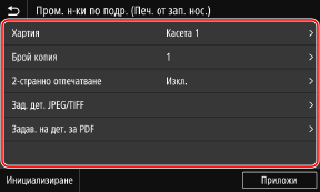 [Промяна на настройките по подразбиране (Печат от запам. носител)].