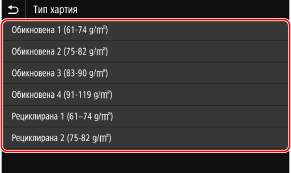 Когато хартията е заредена в многофункционалната тава, на операционния панел се показва екранът за задаване на размера и типа на хартията.