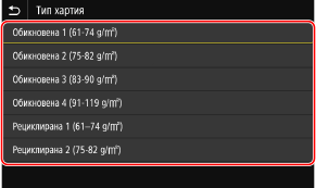 Ако често трябва да сменяте хартията, която ще заредите, задайте [Свободен]; това ще намали броя на стъпките, необходими за промяна на настройката всеки път. Въпреки това, имайте предвид, че тази настройка позволява на устройството да печата дори ако има несъответствие между настройката за тип хартия в драйвера на принтера и типа хартия, действително заредена в устройството.
