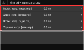 Пример: Когато регулирате позицията за печат на предната страна на хартията във вертикална посока