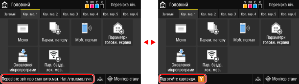 ] на панелі керування. За замовчуванням екран [Головний] відображається після ввімкнення живлення, а також одразу після закриття екрана запуску та входу в систему. Екран [Головний]