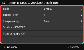 [Змінити параметри за замовчуванням (друк із носія пам’яті)].
