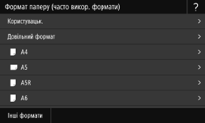Натисніть [Інші формати] і виберіть розмір паперу у відображеному списку.