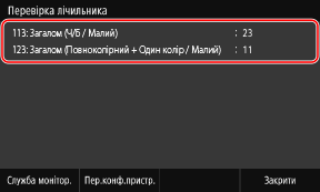 Можна відобразити лічильник, який показує загальну кількість сторінок, надрукованих станом на поточну дату в чорно-білому та кольоровому режимах.