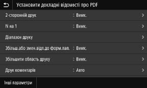 Щоб відобразити цей екран, натисніть [Уст.докл.від.про PDF] на екрані параметрів друку з носія пам’яті.