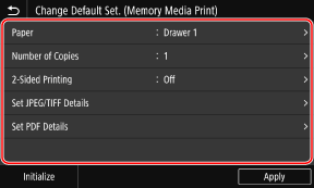 Restoring Default Settings to the Factory SettingsOn the screen in Step 3, press [Initialize]  [Yes]. |