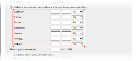 Marque la casilla [Establecer temporizador semanal para el tiempo de apagado automático].