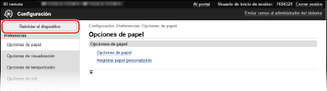 Se necesitan privilegios de Administrador para reiniciar el equipo mediante la IU remota.