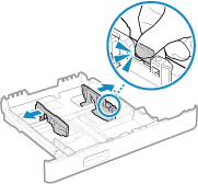 Mientras presiona la palanca de desbloqueo, mueva las guías de papel.