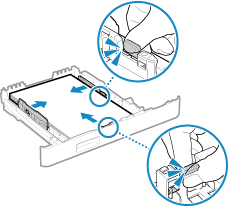Para cargar el papel correctamente, alinee las guías de papel del casete con las marcas.
