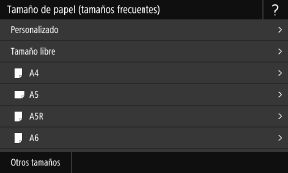 Pulse [Otros tamaños] y seleccione el tamaño de papel en la lista que aparece.
