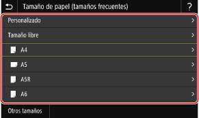 Pulse [Otros tamaños] y seleccione el tamaño de papel en la lista que aparece.