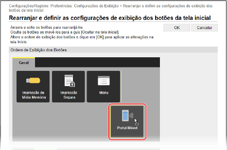 Em [Rearranjar e definir as configurações de exibição dos botões da tela inicial], selecione [Editar na Visualização de botão] ou [Editar na Visualização de lista].