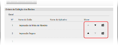 ] ao lado d nome do botão que deseja reorganizar para mover o botão para cima ou para baixo. Clique em [
